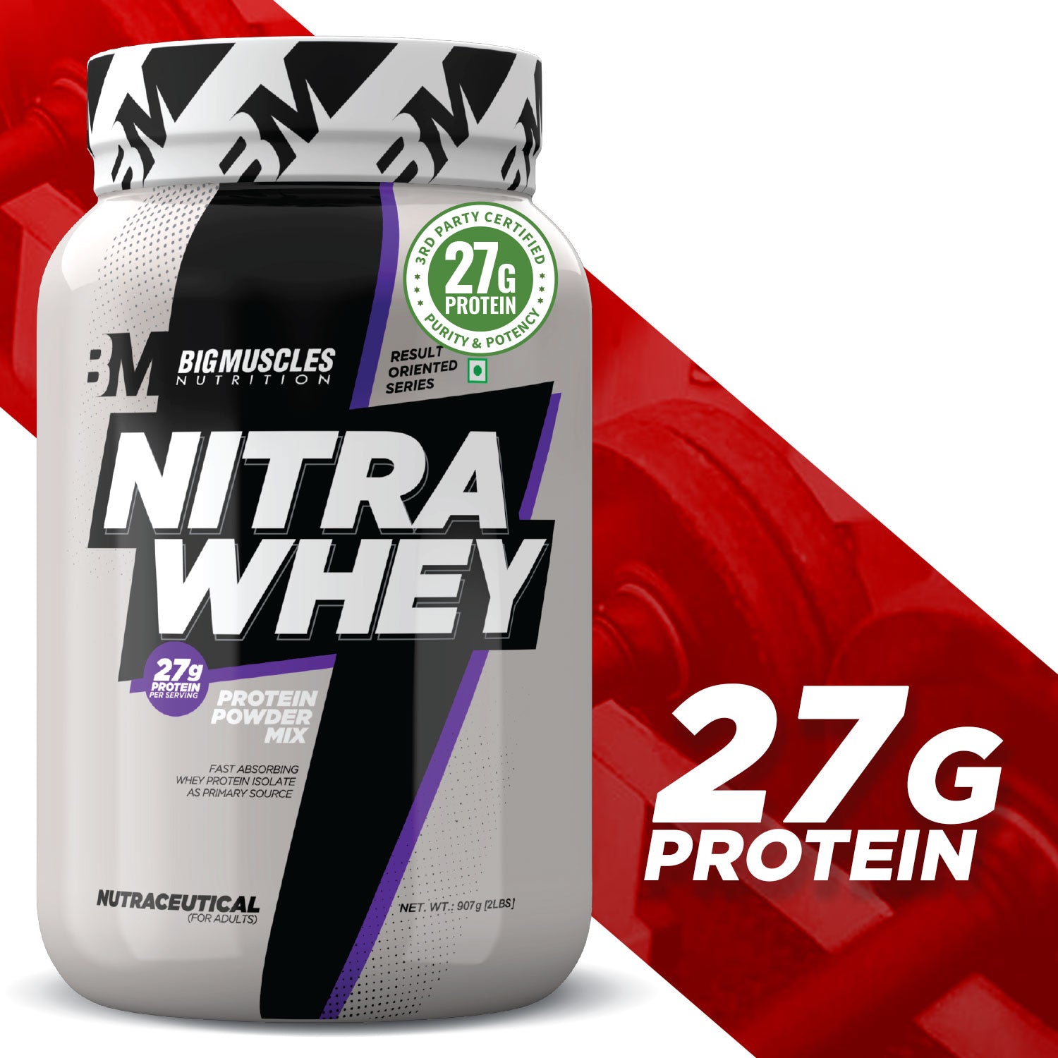 Nitra Whey of Big Muscles is not only easy to mix and silky smooth, but it is also very delicious. All you have to do is mix it with 250 ml water, milk, and any beverage of your choice, or you can also blend it in smoothies or add it to baked goods.